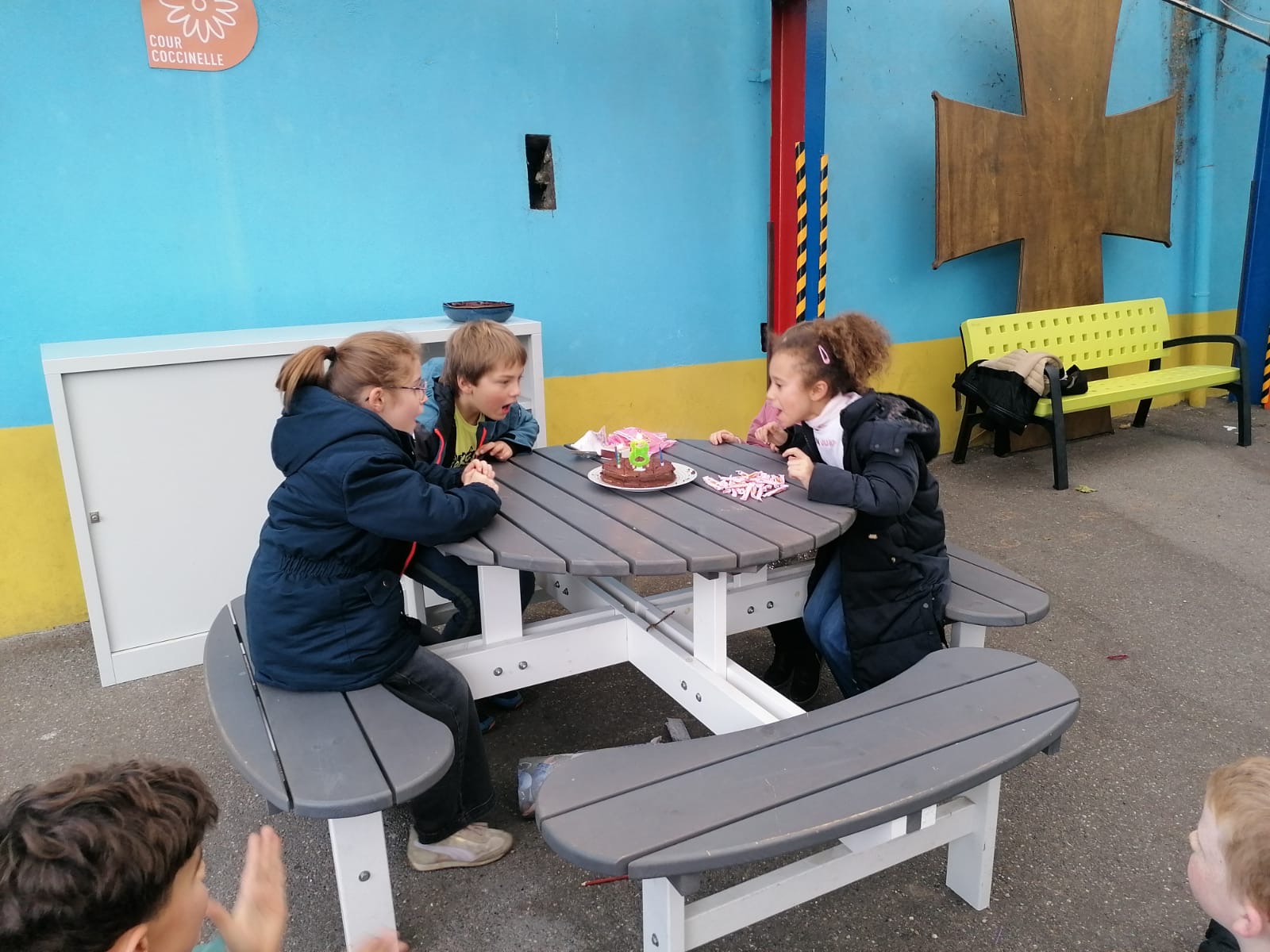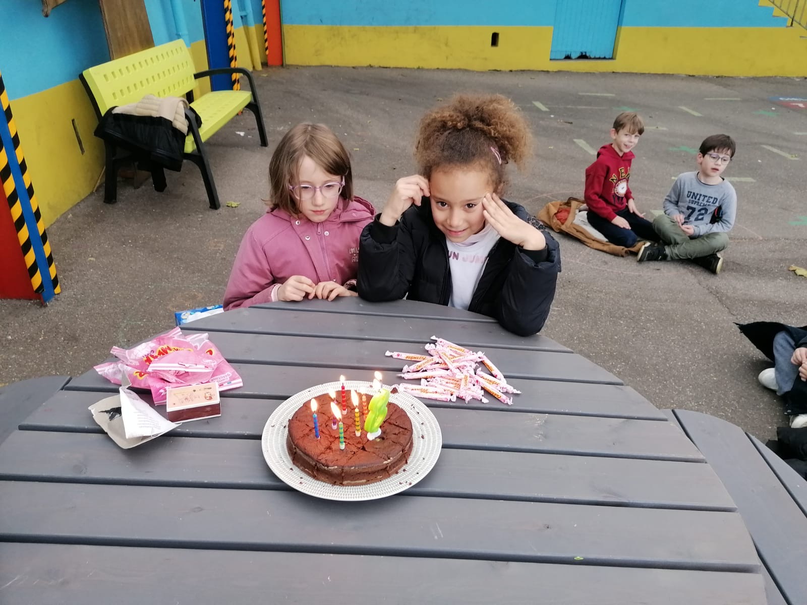Les élèves de CE2A ont fêté les anniversaires des mois de novembre et décembre autour d’un délicieux gâteau fait maison :