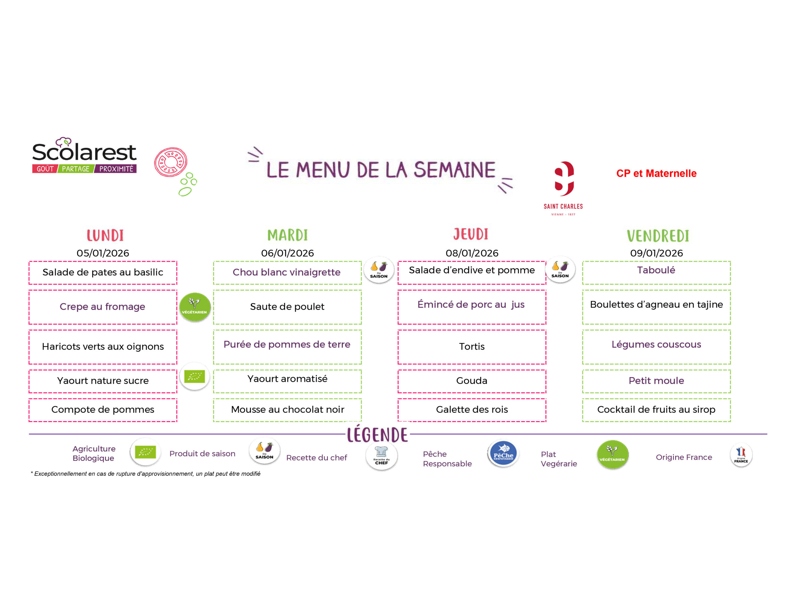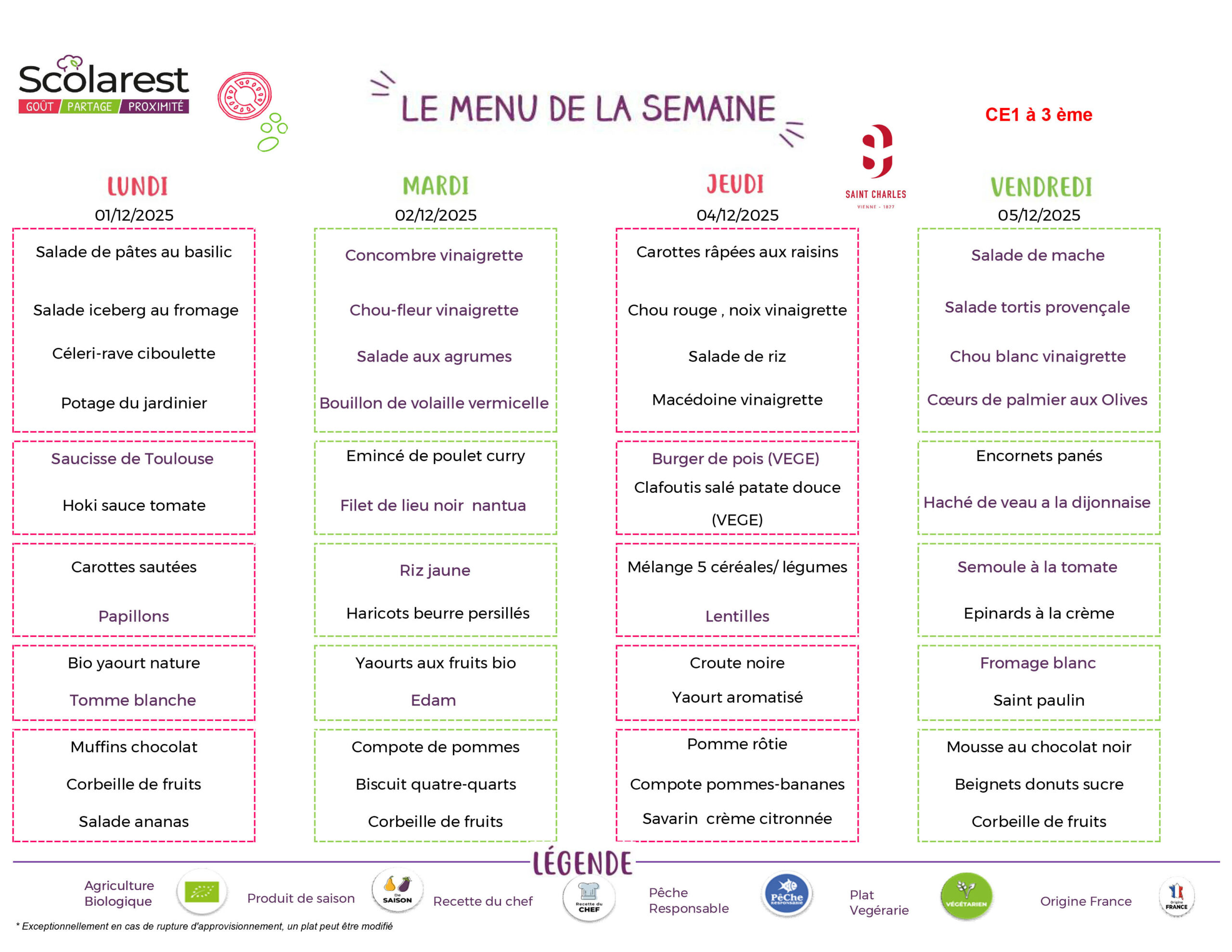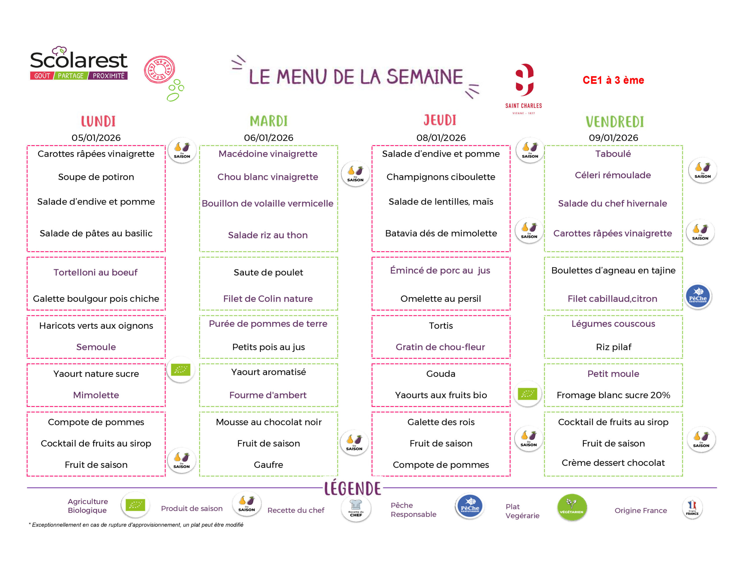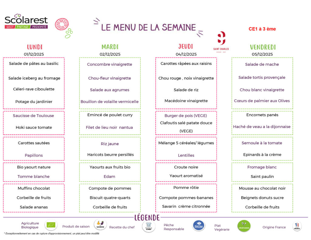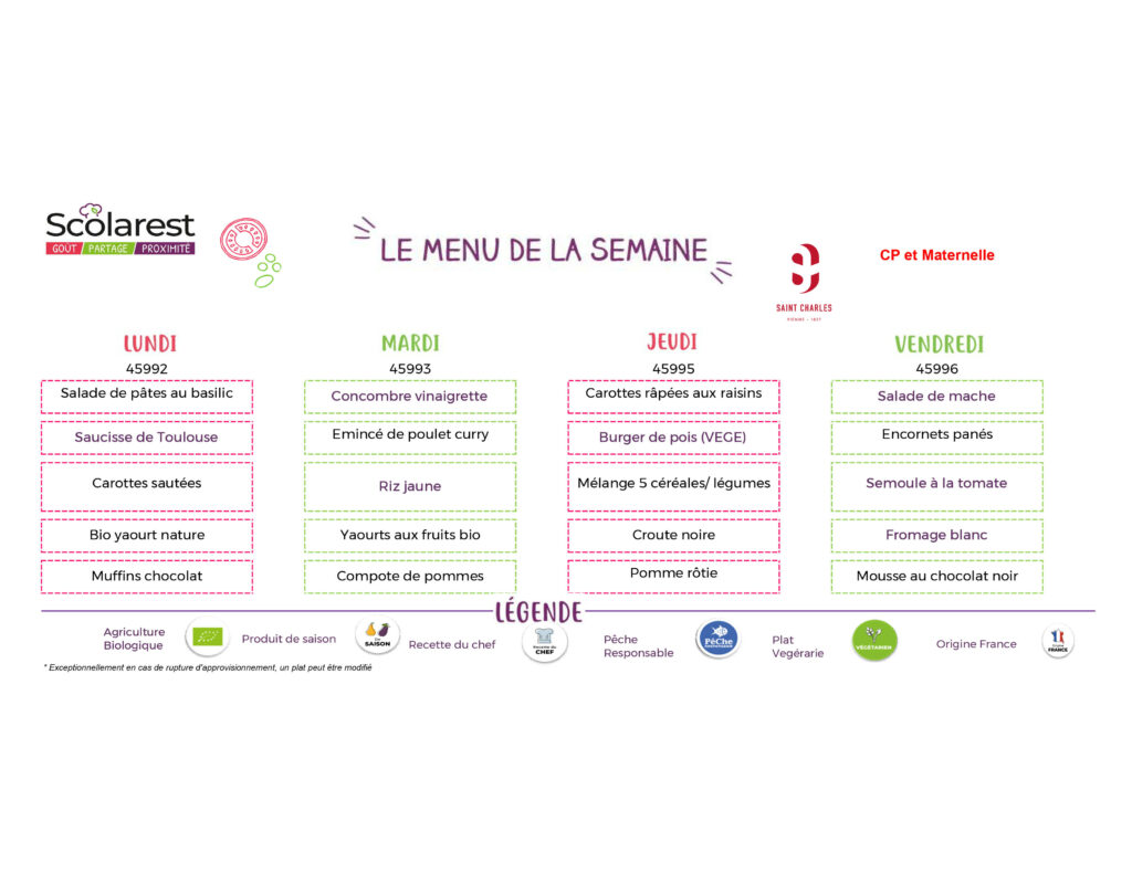 Menu de la semaine