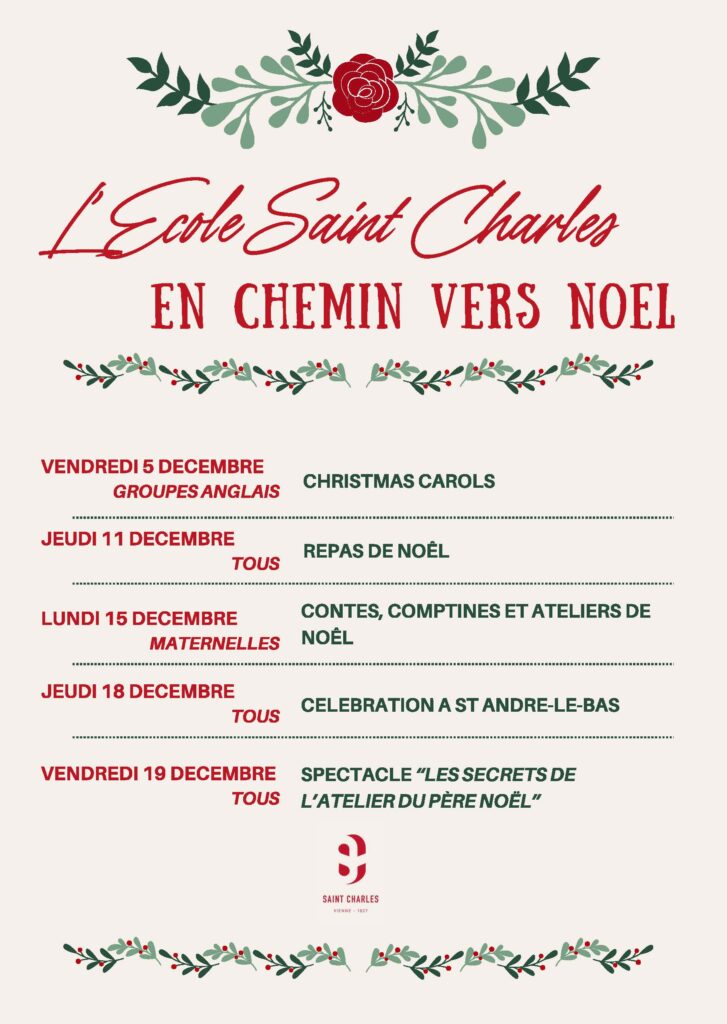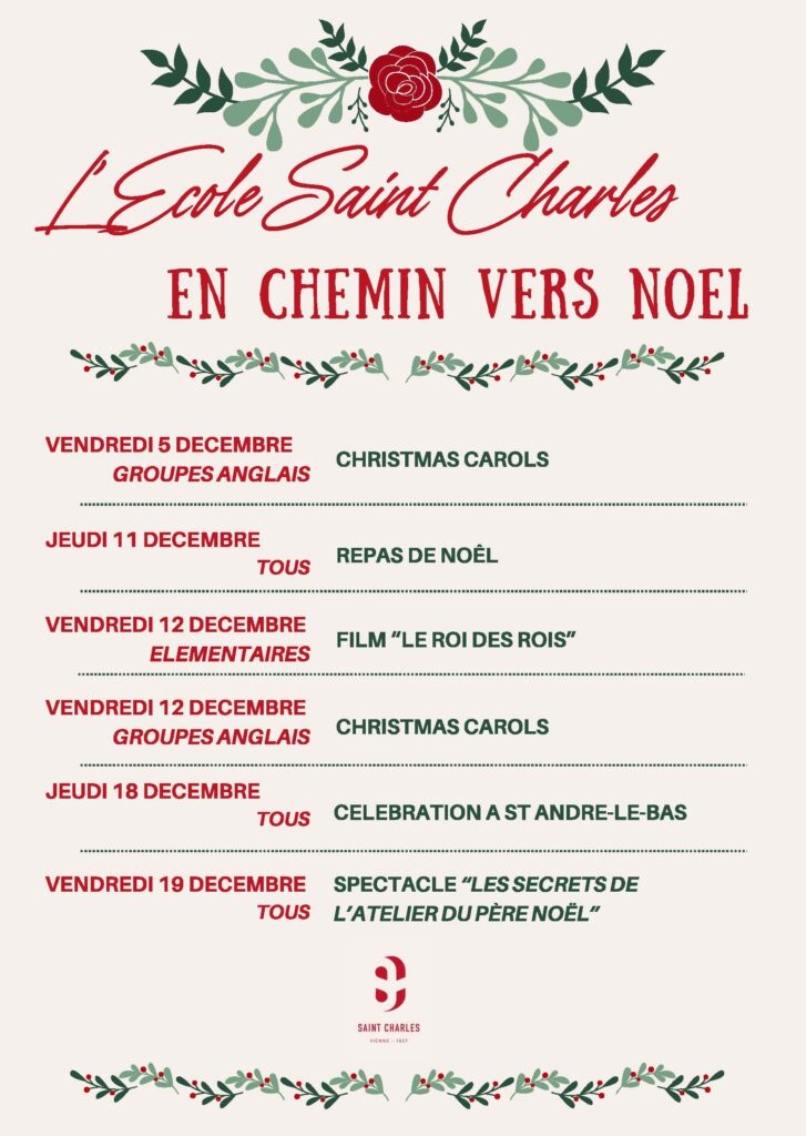 Pour célébrer la fête de Noël, l’Institution propose aux élèves et au personnel de participer à une célébration qui aura lieu le jeudi 18 Décembre, sur la dernière heure de cours du matin, de 11h à 11h55.